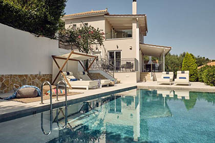 Perfect, modern design; an environment of lush trees and a view of the Ionian Sea; a luxurious swimming pool and...