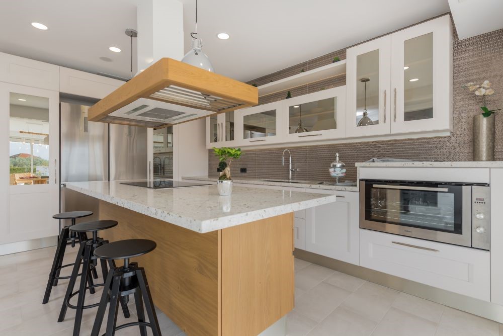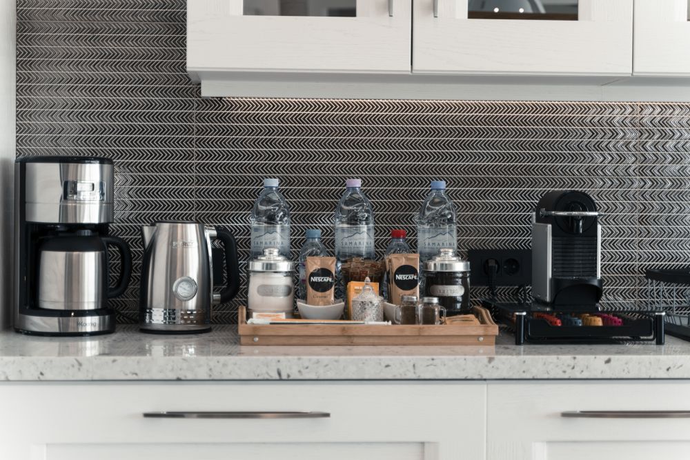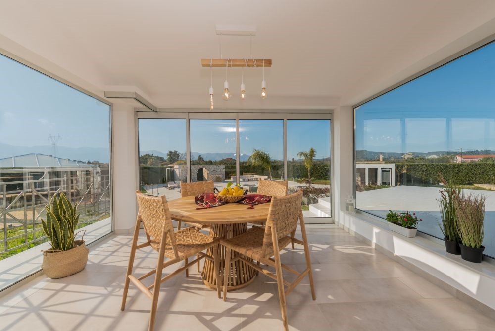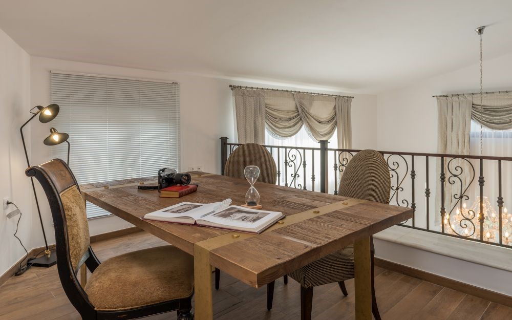The main building is uniquely impressive and features a grand dining area that can easily host 10-12 guests. The spacious, fully equipped kitchen can be used for the preparation of nearly everything you may desire, as it features 2 ovens, microwave, induction hot plates, and a complete collection of kitchenware.